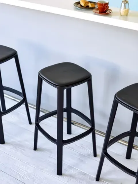 Cadrea verleiht Ihren Partys den idealen Rahmen. Der Barhocker erfrischt mit seinem zeitgenössischen Design und verwöhnt mit seinem Sitzpolster und der umlaufenden Fußstütze. Stapelbar und umweltverträglich eignet sich Cadrea auch bestens für Restaurants, Cafés und Bars. Cadrea ist als Monoblock aus recyceltem Material gefertigt und zeichnet sich durch sein geringes Gewicht sowie durch seine Lichtbeständigkeit aus.