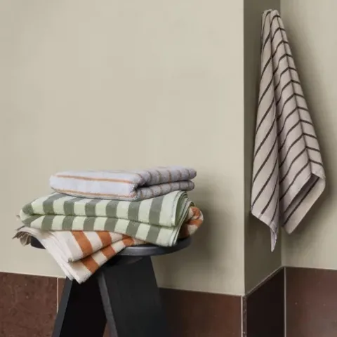 Sich kuschelig und heimelig fühlen und das Persönliche kultivieren – dafür ist Arto gemacht. Feine Streifen sind die Signatur des Handtuchs Arto. Es steht in vier unterschiedlichen Farbdessins zur Wahl ebenso wie das Badetuch Arto, das es sowohl mit dünnen als auch mit gleichmäßig dicken Streifen gibt. Mit den Hand- und Badetüchern in minimalistischer Ästhetik umschmiegt Sie weiches Frottee frei von schädlichen Stoffen.