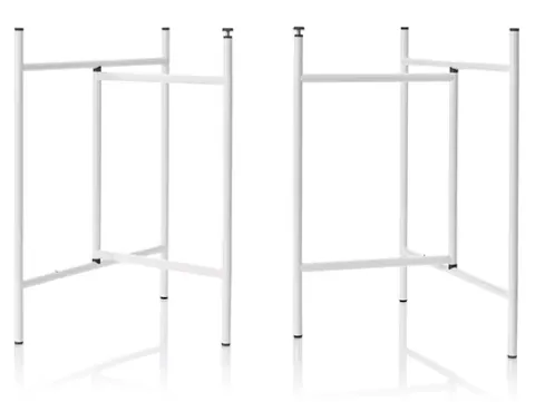 Inspiriert vom Tischgestell Egon Eiermanns aus dem Jahr 1953 hatte der Designer Alexander Seifried 2014 die Idee zu einem neuen Gestell dem Klappbock Eiermann 3. Mit großem Respekt vor dem Erfindungsreichtum des Architekten Eiermann nahm Seifried die originalen Seitenrahmen des Tischgestells und ergänzte diese mit langen Auslegern, die mittig oder exzentrisch montiert werden können – je nachdem, ob Sie den Tisch von ein oder zwei Seiten nutzen und die Beinfreiheit entsprechend verteilen wollen.