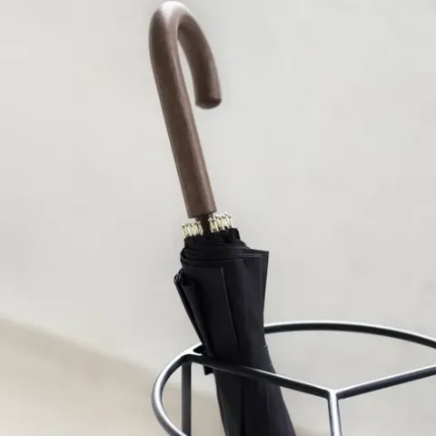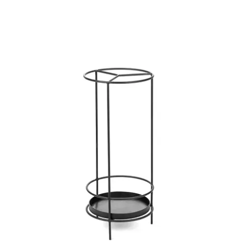 „Ella ist einfach der letzte Teil von umbrella und mir gefiel, wie das klang“, sagt der sizilianische Designer und Kunstschmied Antonino Sciortino. Der Schirmständer Ella ist als Teil seiner Kollektion „Metal Sculptures“ aus seinem Lieblingsmaterial Stahl gefertigt und von Hand schwarz gebürstet. Das Design folgt in seiner Geradlinigkeit dem Bauhaus-Prinzip: Ein runder, in drei Fächer unterteilter Halter, ein herausnehmbares Tablett und eine Gummimatte zur einfachen Reinigung. Alles, was Sciortino herstellt, war ursprünglich für sein eigenes Zuhause gedacht. Dies gilt auch für bella Ella.