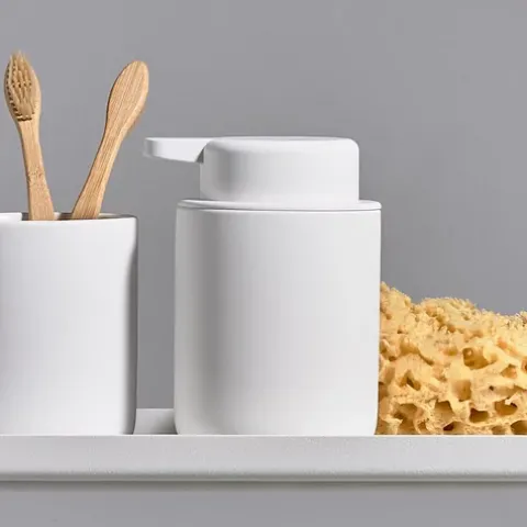 Mit dem Seifenspender Ume wird Händewaschen zum ästhetischen Vergnügen. Er sieht nicht nur gut aus, sondern besticht auch durch seine angenehme Haptik. Wenn er aufgefüllt oder gereinigt wird, liegt die Soft-Touch-Oberfläche rutschsicher und sanft in der Hand. Die hauchzarte Gummierung spricht nicht nur die Sinne an, sie ist darüber hinaus auch unempfindlich gegen Kratzer, Nässe und Schmutz. Steingut und ABS-Kunststoff sind die Materialien der mit Design-Auszeichnungen gewürdigten Produkte der Badserie Ume. Farbechtheit und Langlebigkeit des Seifenspenders Ume unterstreichen zudem seine Hochwertigkeit. So macht Hygiene wirklich Freude.
