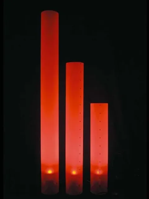 Farbwechsel und Weißlicht in einer Leuchte – das ist die Spezialität der Stehleuchte Chameledeon Color LED. Über eine App stellen Sie bequem faszinierende Farben oder aber warmes/kühles Weißlicht mit Ihrem Smartphone ein. Ebenso die Helligkeit. Die Leuchte läßt sich auch über Google Assistant, Amazon Echo oder Apple HomeKit steuern. Schwarze Knöpfe halten den transluzenten Kunststoffschirm in seiner runden Röhrenform.