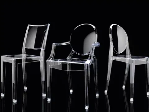 Die Eleganz der Transparenz – La Marie von Philippe Starck für Kartell ist ein transparentes Sitzmöbel für alle diejenigen, die in keiner Lebenslage auf den Durchblick verzichten möchten. Das italienische Sitzmöbel gilt als der erste vollständig transparente Stuhl der Welt und wird in einem Stück aus Polycarbonat gegossen. Das Ergebnis ist eine geschmackvolle Synthese aus dynamischer Linienführung und architektonischer Sachlichkeit: während die Vorderbeine im rechten Winkel an die Sitzfläche anschließen, deuten die Hinterbeine ein elegantes Oval an. Diese Konstruktion ermöglicht einerseits einen stabilen Stand, andererseits ein bequem zurückgeneigtes Sitzen. Die Sitzfläche wird dank einer sanften Mulde auch nach stundenlangem Sitzen nicht unbequem. Der Stuhl La Marie ist trotz der optischen Leichtigkeit ein äußerst standfestes Möbel, das sich der Transparenz wegen harmonisch mit vielen verschiedenen Einrichtungen kombinieren lässt. La Marie ist auch zum Hochstapeln geeignet, damit sie bei Bedarf eine größere Bestuhlung bereitstellen und auch platzsparend einlagern können.