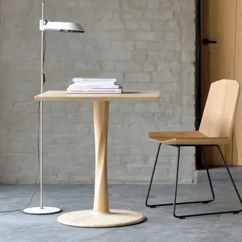 Ob mit runder oder quadratischer Tischplatte – Torsion bildet eine Symbiose aus klassischer Ästhetik, modernem Look und Nachhaltigkeit. Der Designer Alain van Havre wählte für alle Teile des Tisches hochwertiges Eichenholz. Aus diesem schuf er skulpturale Formen mit torsadenförmigen Elementen, die den beiden Tischvarianten neben der warmen Ausstrahlung des fein gemaserten Holzes besondere Raffinesse und Eleganz verleihen. Torsion wird so zu einem „natürlichen“ Klassiker der besonderen Art.