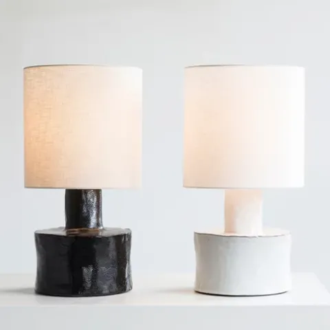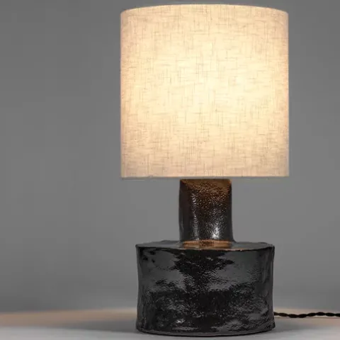 Die Tischleuchte Catherine überrascht mit ihrem außergewöhnlichen Fuß. Die Designerin Marie Michielssen experimentierte mit Keramik und schuf den Leuchtenfuß für Catherine. Aufgrund der Handmodellierung ergibt sich die unregelmäßige Form, die der Leuchte ihre charakteristische Note verleiht.