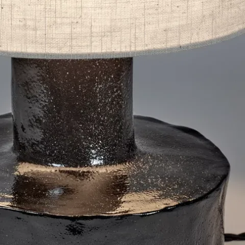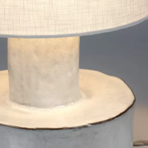 Ausführung: Fuß: Keramik/Steingut; Leuchtenschirm: Leinen