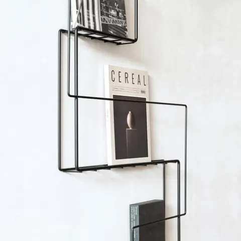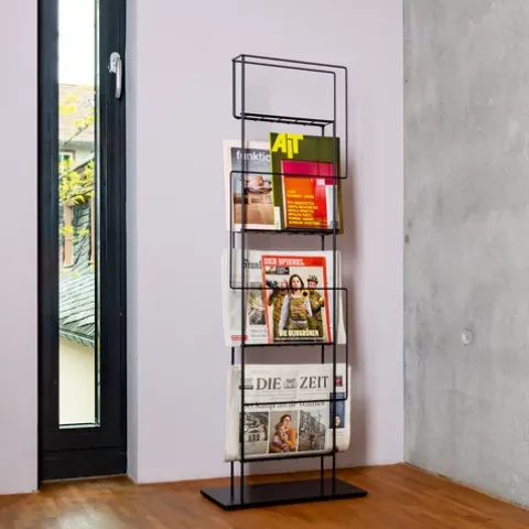 Revue macht seinem Namen alle Ehre. Die filigran-elegante Struktur nimmt sich dezent zurück und setzt die Objekte in Szene, die als Zeitschriften, Bücher, Magazine, Prospekte, Fotobände … Revue passieren und immer wieder ihren Nachfolgern Platz machen können. Mit der hochwertig verarbeiteten Drahtskulptur können Sie die Bühne für Ihre Schau-Objekte ganz nach Gusto gestalten und je nach Bedarf erweitern.