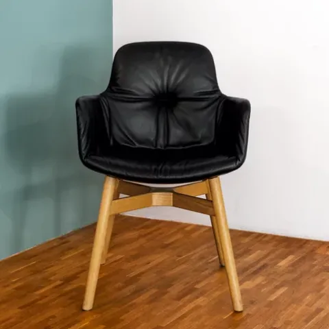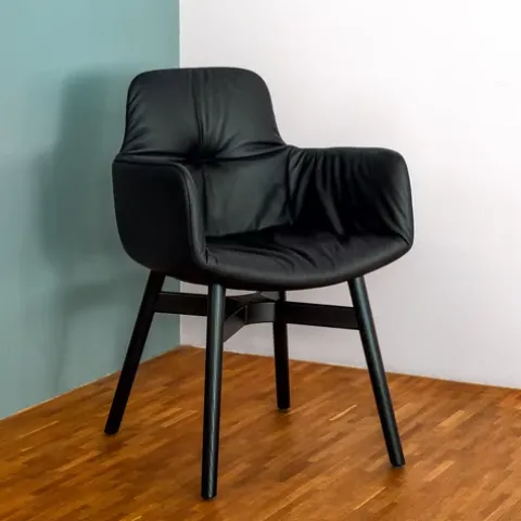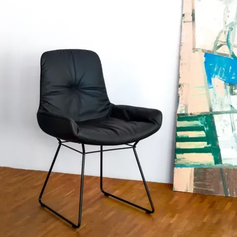 Die Armlehnstühle Leya sind sehr bequem, lässig weich und äußerst formschön. Dies verdanken sie der traditionellen Handwerkskunst der Möbelmanufaktur Freifrau und dem Designerduo Birgit Hoffmann und Christoph Kahleyss. Ob Sie den Armlehnstuhl mit filigranem pulverbeschichtetem Drahtgestell und niedrigen Armlehnen oder den mit Holzgestell in Eiche natur oder Eiche schwarz, beide mit hohen Armlehnen, wählen, bleibt Ihrem eigenen Gusto und Ambiente überlassen. Alle Modelle sind aus hochwertigen Materialen gefertigt und verbinden die Eleganz des handvernähten Lederbezugs mit einem anschmiegsamen sanften Sitzgefühl. Die drei Varianten des Armlehnstuhls Leya verleihen ihm jeweils einen ganz eigenen Charakter. Allen drei langlebigen Designobjekten gemeinsam ist die Polsterung der Sitzschale, die sich geradezu sinnlich wie ein weiches Kissen beim Platznehmen anfühlt und zu stundenlangem Verweilen einlädt. Die formvollendeten Armlehnstühle Leya sind Teil der Freifrau-Sitzmöbelserie Leya und lassen sich mit Sesseln und Ottoman ergänzen.
