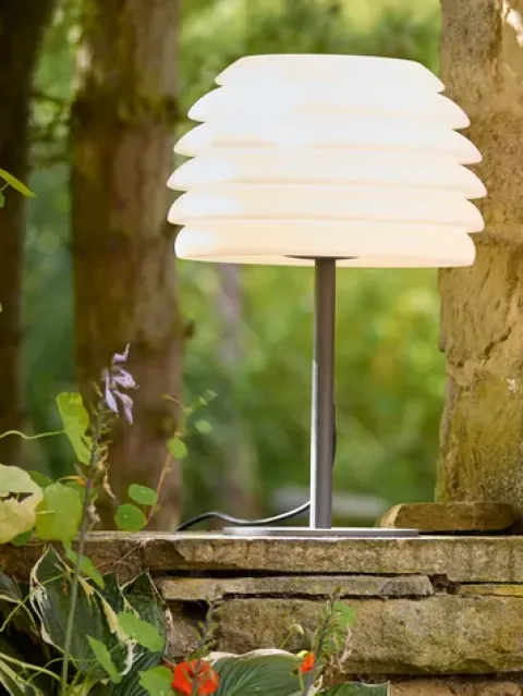 Schlanke Gestalt und warmweißes Licht – die Noris ist als Tisch- und Stehleuchte erhältlich und sowohl für den Innen- wie auch den Außenbereich geeignet. Der Leuchtenkopf strahlt das Licht angenehm sanft nach unten ab und wirkt gerade in der Dunkelheit geradezu skulptural. Mit einer Kabellänge von 3m bringt diese Leuchte einen großen Radius um ihre Stromquelle mit.