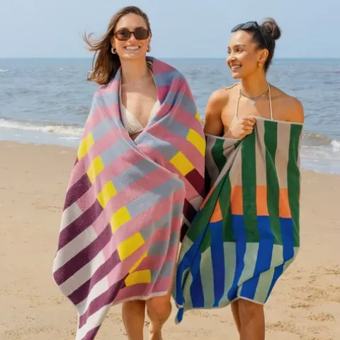 In frischer Streifenoptik verbreiten die Remember Badetücher gute Laune. Aus Baumwolle gemacht sind sie angenehm flauschig und schmeicheln Ihrer Haut. Die farbenfrohen saugfähigen Badetücher sind extragroß, sodass Sie sich genussvoll in voller Länge darauf ausstrecken können. Wählen Sie Ihre Lieblingsvariante und genießen Sie die Sommerfreuden bei kühlem Nass am Badesee, auf dem Liegestuhl im Garten, auf der Wiese oder bei Meeresrauschen am Strand.