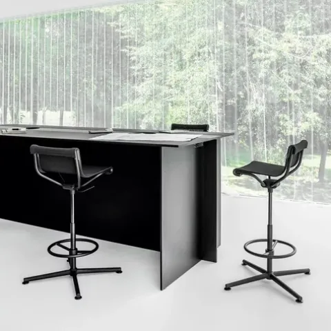 D1 Highstool stammt aus der Feder, oder besser gesagt, von der Werkbank des preisgekrönten, international gefragten Industriedesigners Stefan Diez. Als Shootingstar der deutschen Designszene ist er bekannt für seine Experimentierfreude, gepaart mit perfektionistischer Handwerkskunst. In seinem Designstudio in München entwickelt er Designs in einfacher Formensprache in Kooperation mit renommierten Marken. Für den Büromöbelhersteller Wagner schuf er einen Barstuhl in zwei Varianten: D1 Highstool hoch und D1 Highstool mittelhoch. Beide Stühle zeichnen sich durch ein vierdimensional bewegliches Dondola-Sitzgelenk aus. Den natürlichen Bewegungen des Körpers folgend, verschafft es Bewegungsfreiheit und unterstützt eine gute Sitzhaltung. Zudem verfügen sowohl der hohe als auch der mittelhohe Highstool D1 über eine Sitzhöhenverstellung. Dank des netzbespannten Stahlrohrrahmens mit selbsttragendem Netzbezug gewinnen die Barstühle elegante Leichtigkeit bei hohem Sitzkomfort. Highstool D1 verkörpert anspruchsvolle Ästhetik und erlaubt Dynamik in der Sitzweise. Die hohe Variante ist mit einem Fußring versehen. Inspiriert von seinem Mentor Richard Sapper, beruflichen Anfängen im Designstudio von Konstantin Grcic und seiner Liebe zum Handwerk eroberte Stefan Diez die Gunst der Designliebhaber und überzeugt immer wieder mit innovativen Entwürfen – wie dem D1 Highstool.