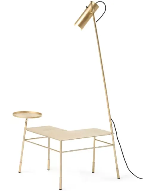 Der runde Beistelltisch und die Leuchte sind wahlweise rechts oder links montierbar.
