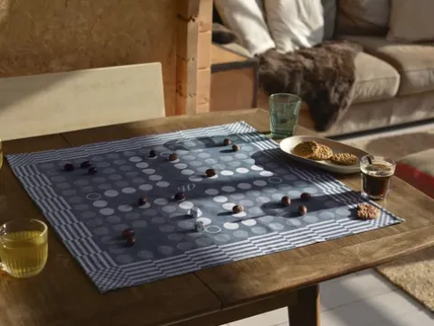 Wer verliert, trocknet ab: Die liebenswürdigen Geschirrtücher Tea Towels des Kreativlabels Weltevree zeigen die gewebten Spielbrett-Strukturen für Schach und Mensch-ärgere-Dich-nicht. Ihre Spielsteine legen Sie selbst fest. Viel Vergnügen – wer das Spiel verliert, muss anschließend das Geschirr abtrocknen!