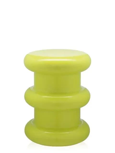 Der Hocker Pilastro von Ettore Sottsass für Kartell ist sowohl hinsichtlich der Gestaltung als auch der Herstellung von ganz hervorragender Abstammung. Sottsass war ein österreichisch-italienischer Architekt und Gestalter von Wohnutensilien, deren radikale Formensprache als „Anti-Design“ weltweit bekannt wurde und den Designer zu einem der erfolgreichsten Italiens machte. Als Mitbegründer der Memphis Gruppe entwarf und initiierte er Objekte, deren Farben grell und Formen zumeist von basalen geometrischen Figuren wie Kegeln, Kugeln, Pyramiden oder Würfel abgeleitet waren – so wie die Ringe des Hockers Pilastro. Das als befremdlich empfundene Design radikalisierte gängige Vorstellungen von guter Gestaltung und auch heute noch fesseln die Entwürfe von Ettore Sottsass unsere Augen. Sottsass hat vom Essbesteck über Rechenmaschinen und Möbeln bis zu Bushaltestellen ein weites gestalterisches Feld beackert. Kartell, der Hersteller des Pilastro-Hockers, gehört zu den avanciertesten Kunststoffmöbelmanufakturen nicht nur Italiens und Europas, sondern der Welt. Kartell arbeitet mit den namhaftesten Designern der Welt zusammen und hat außerdem die ersten Möbel produziert, die nur aus einem einzigen Kunststoffstück bestehen. Das Unternehmen zählt einige der berühmtesten Kunststoffmöbelentwürfe der Gestaltungsgeschichte zu seinem Portfolio – und der Hocker Pilastro von Ettore Sottsass gehört ganz bestimmt dazu!