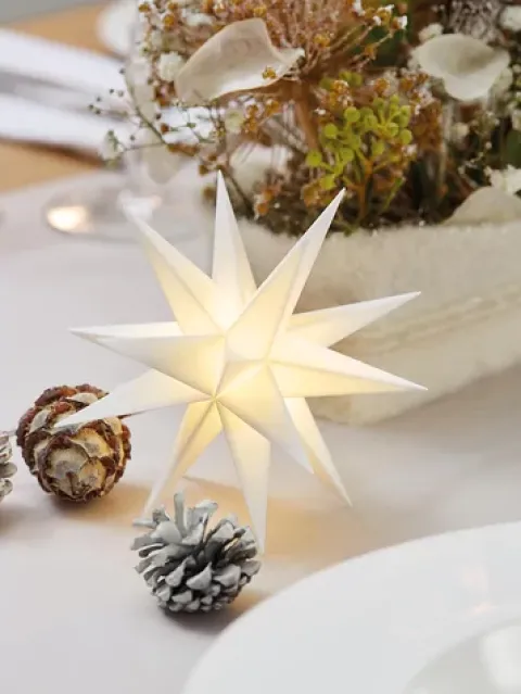 Kaum ein Dekorationsobjekt ist in der Advents- und Weihnachtszeit so häufig zu sehen wie der Stern. Dieser kleine LED-Leuchtstern ist von innen beleuchtet, verfügt über 18 filigrane Zacken und gibt ein heimeliges, warmweißes Licht ab – genau das, was die kalte und dunkle Winterzeit so angenehm macht. Machen Sie es sich gemütlich!