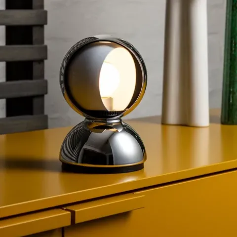 Die Eclisse Tischleuchte ist ein Gleichgewicht aus Form und Funktion und Design und Nutzen. Sie besteht aus einer Aneinanderreihung von drei halbkugelförmigen Schalen, von denen zwei die äußere Hülle bilden und eine im Inneren rotiert und die Lichtquelle „verdeckt“. Der innere Reflektor kann durch Drehen am schwarzen Rad verstellt werden, damit lässt sich die gewünschte Helligkeit einstellen. Wird ihr Licht gegen die Wand gedreht, fungiert die Eclisse LED-Tischleuchte als indirekte, samtig-weiche Beleuchtung. Eclisse kann auch an die Wand montiert werden.