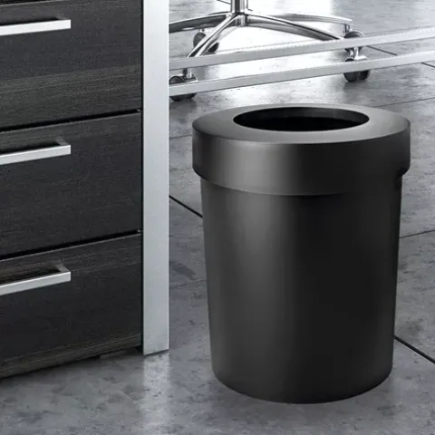 Cap ist ein Papierkorb mit Raffinesse. Mittels des abnehmbaren Ringaufsatzes lassen sich Mülltüten fixieren und der Papierkorb aus dickwandigem Polypropylen bleibt innen sauber. Der Ringaufsatz verbirgt auch überstehende Tütenränder. So macht Cap in seiner zylindrischen Form überall eine bella figura.