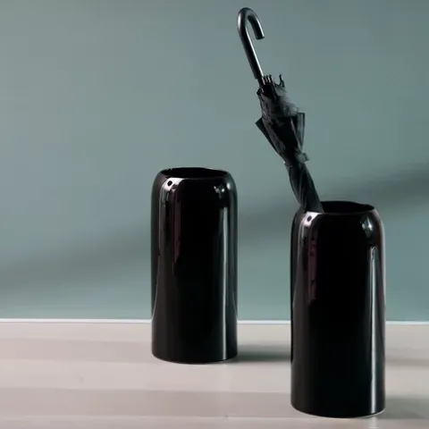 Carlo empfängt Schirme mit Grandezza. Dem Schirmständer aus glasierter Keramik verlieh Christian Haas eine charmant harmonische Form. Im Schirmständer Carlo verbindet sich moderne Sachlichkeit mit traditioneller Handwerkskunst. In Portugal von Hand gefertigt, ist jeder Schirmständer ein Unikat, das kleine Unebenheiten an der Oberfläche aufweisen kann und südliches Flair in jedes Ambiente zaubert.