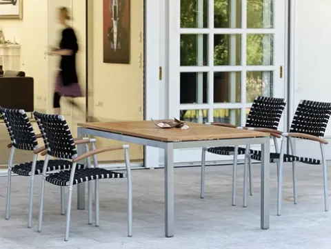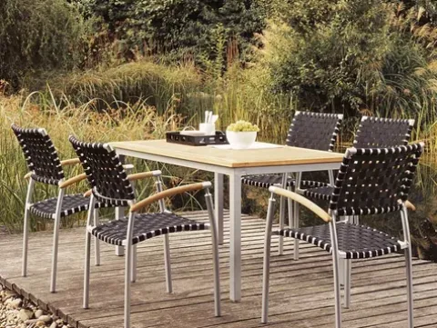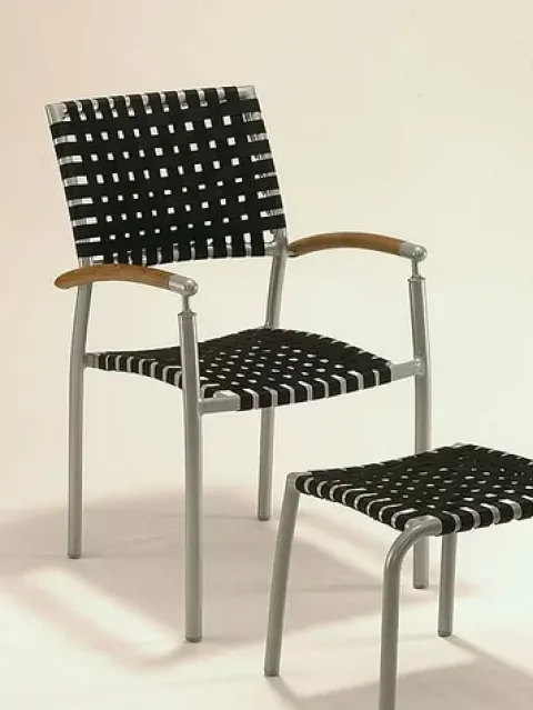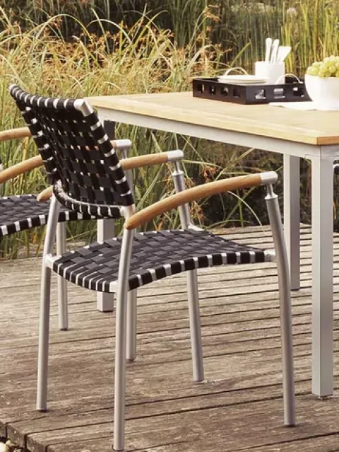 Platz nehmen und genießen. Der Stapelsessel Modena bietet stilvollen Sitzkomfort. Die Arme ruhen bequem auf abgerundeten Teakarmlehnen, diesich auch bei großer Hitze angenehm anfühlen. Der Aluminiumsessel mitGurtbespannung besticht nicht nur durch Optik und Komfort, er lässt sich darüber hinaus auch stapeln.