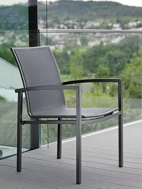 Schlichtes Design und hohe Qualität für Ihren Außenbereich – der Stapelstuhl Skelby zeigt ein sachliches Gestell von minimalistischer Anmutung und einem farblich fein abgestimmten Bezug. Damit bietet der Stuhl einen hohen Sitzkomfort, der ideal ist für lange Abende im Freien. Bis zu vier Exemplare des Stuhls sind stapelbar. Der Stapelstuhl Skelby stammt von Stern Möbel, einem deutschen Qualitätserzeuger von Garten- und Outdoor-Mobiliar aus dem baden-württembergischen Affalterbach bei Stuttgart. Seit 70 Jahren arbeitet das Unternehmen mit eigenen und freien Designern mit großer Passion und akribischer Perfektion an der Entwicklung von qualitätsvollen Möbeln. Auch die Montage und Qualitätskontrolle finden am eigenen Standort statt.