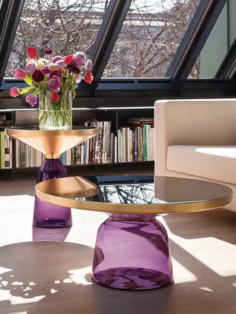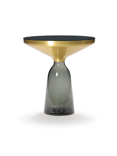 Der Bell Table ist ein als Couchtisch oder Beistelltisch zu nutzendes Designstück von eigenen Gnaden. Auf dem mundgeblasenen Glasfuß ruht ein Messingaufsatz, der die Tischplatte aus Kristallglas trägt. Der Kontrast der beiden Materialien bedingt schimmernde Lichtreflexionen, die die Schönheit des Materials majestätisch zur Geltung kommen lassen. Schöpfer dieser exquisiten Materialien in formvollendeter Verarbeitung ist der junge Designer Sebastian Herkner (*1981), ein mehr als einfach nur talentiertes Gewächs der Hochschule für Gestaltung Offenbach (HfG). Herkner lässt den Tisch für ClassiCon in arbeitsintensiven Verfahrensweisen per Hand produzieren. Der Hersteller ClassiCon (Classic Contemporary Design) versteht sich auf die Fertigung zeitgenössischer Klassiker oder neuer Designstücke, die durch Originalität, formale Perfektion und ideale Materialien das Potential zum Klassiker haben und auch für kommende Generationen einen Wert haben. Die Marke ClassiCon hat sich mit dieser Philosophie bei Designliebhabern weltweit in der Gunst nach ganz oben gespielt.