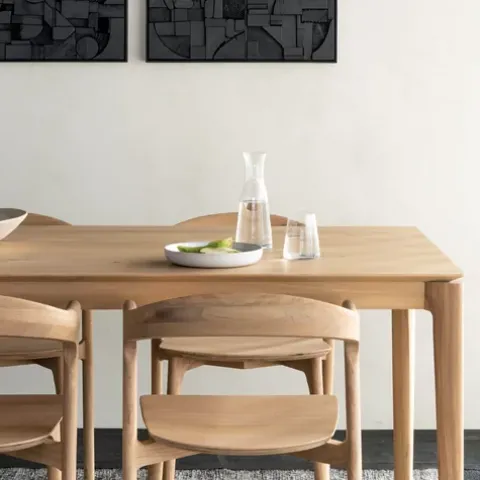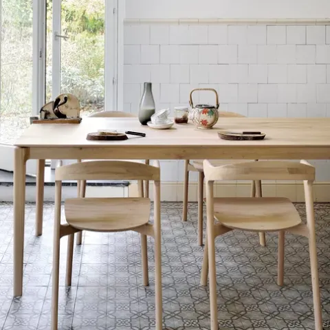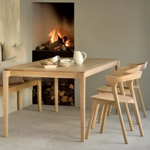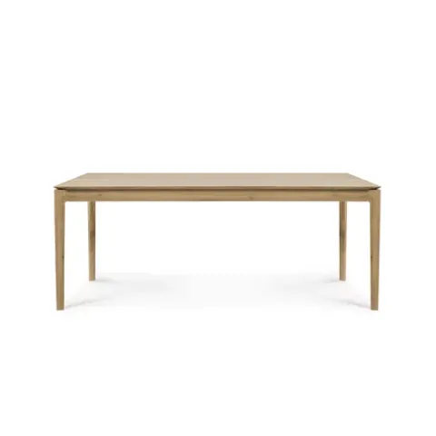 Der Esstisch Bok überzeugt durch seine schlichte Formensprache und die solide Konstruktion aus Eichenholz. Material und Design machen ihn zu einem zeitlosen Möbel, das sich in unterschiedliche Umgebungen integrieren lässt und langfristig Freude bereitet. Das massive Eichenholz ist mit Hartwachs-Öl bearbeitet und sorgt für eine angenehme Haptik. Bok steht in unterschiedlichen Größen zur Wahl. Die Esstische aus natürlichem Rohstoff schaffen eine wohnliche Atmosphäre und laden zum Dinieren ein. Dem Designer Alain van Havre ist es gelungen, solides Eichenholz in elegante Tische zu verwandeln, die gleichzeitig Wärme und Leichtigkeit ausstrahlen. Die Esstische sind der tragende Teil der Bok-Serie, die außerdem Stühle und einen Ausziehtisch umfasst.