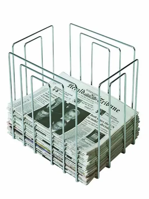 Schluss mit den liederlichen Papierbergen – Full Size bringt System in die Lagerung Ihrer Tageszeitungen. Durch die aufstrebende Chromstruktur bleibt die großformatige Tagespresse an ihrem Platz und erlaubt Ihnen – falls Sie noch einmal etwas nachlesen möchten – jederzeit einen einfachen Zugriff.